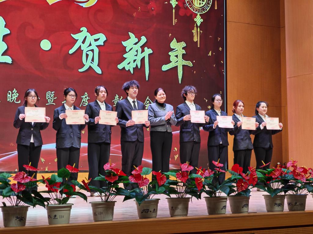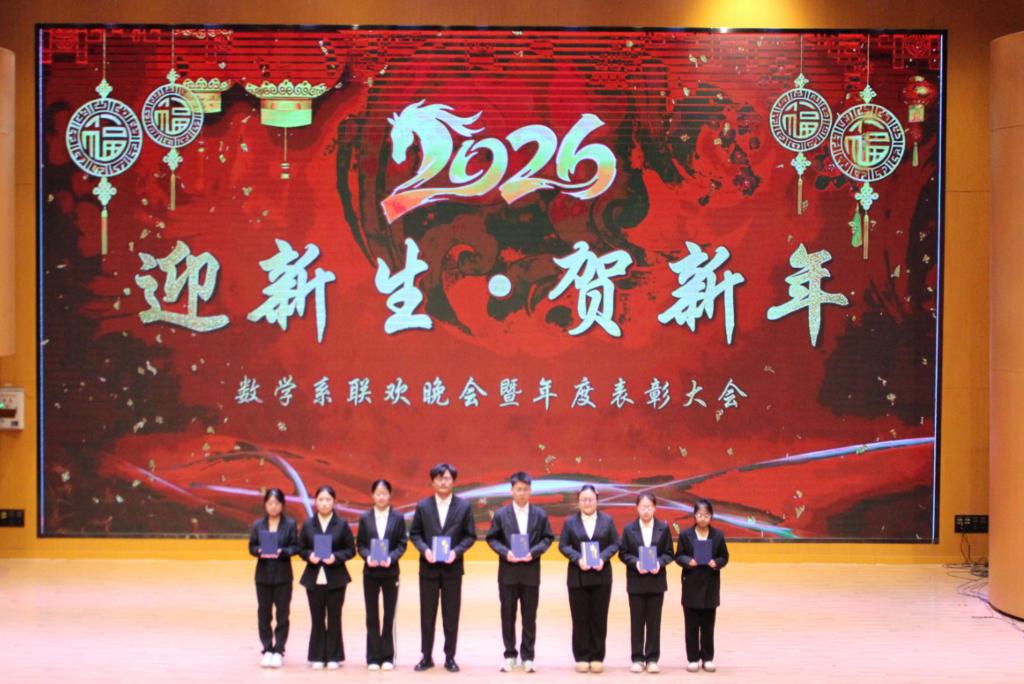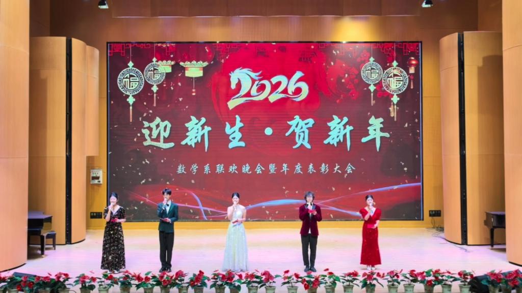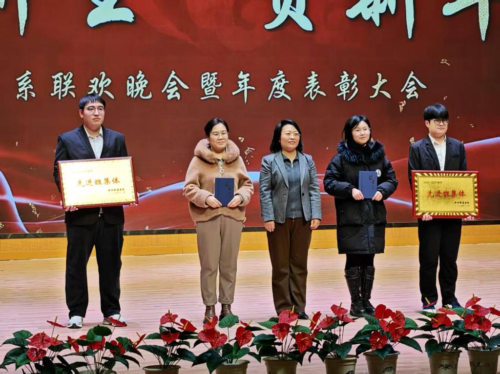 12月26日,我系“迎新生·贺新年”联欢晚会暨年度表彰大会在热烈气氛中隆重举行。系主任兰旺森教授、党总支书记邢芳老师、副主任王鹏飞老师、党总支副书记侯利君老师等党政领导班子成员与全体辅导员、2025级新生、老生代表欢聚一堂,共迎新年,表彰先进,展望未来。